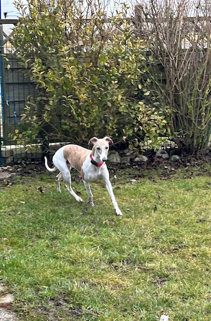 Il cherche une maison en or, idéalement avec un copain et une personne présente pour s'occuper de lui. C'est un chien qui pourrait aussi commencer le coursing pour les amateurs ou faire d'autres activités.