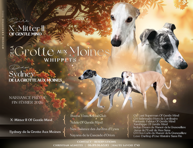 La Maman est Sydney, une très jolie chienne issue de l'élevage de la Grotte aux Moines qui n'est autre que la soeur de notre magnifique Vidoc !